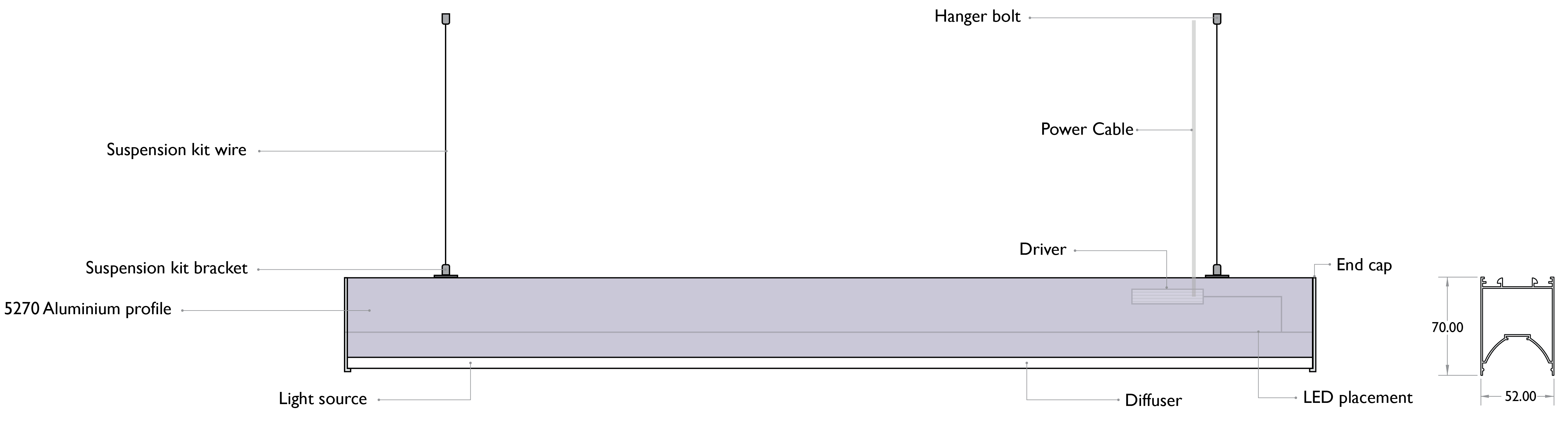 With a smart and sleek design, the Linear 5270 is ideal for offices, commercial spaces, and showrooms. This fixture is suitably designed and manufactured with the special Aluminium alloy, and hence, it is lighter in weight and supports better heat dissipation. This Linear suspended luminaire provides better luminous flux and uniform light distribution due to its concave designed light path inside the fixture. This Linear model carries the cascading option in a series with zero light leakage between the connections.
