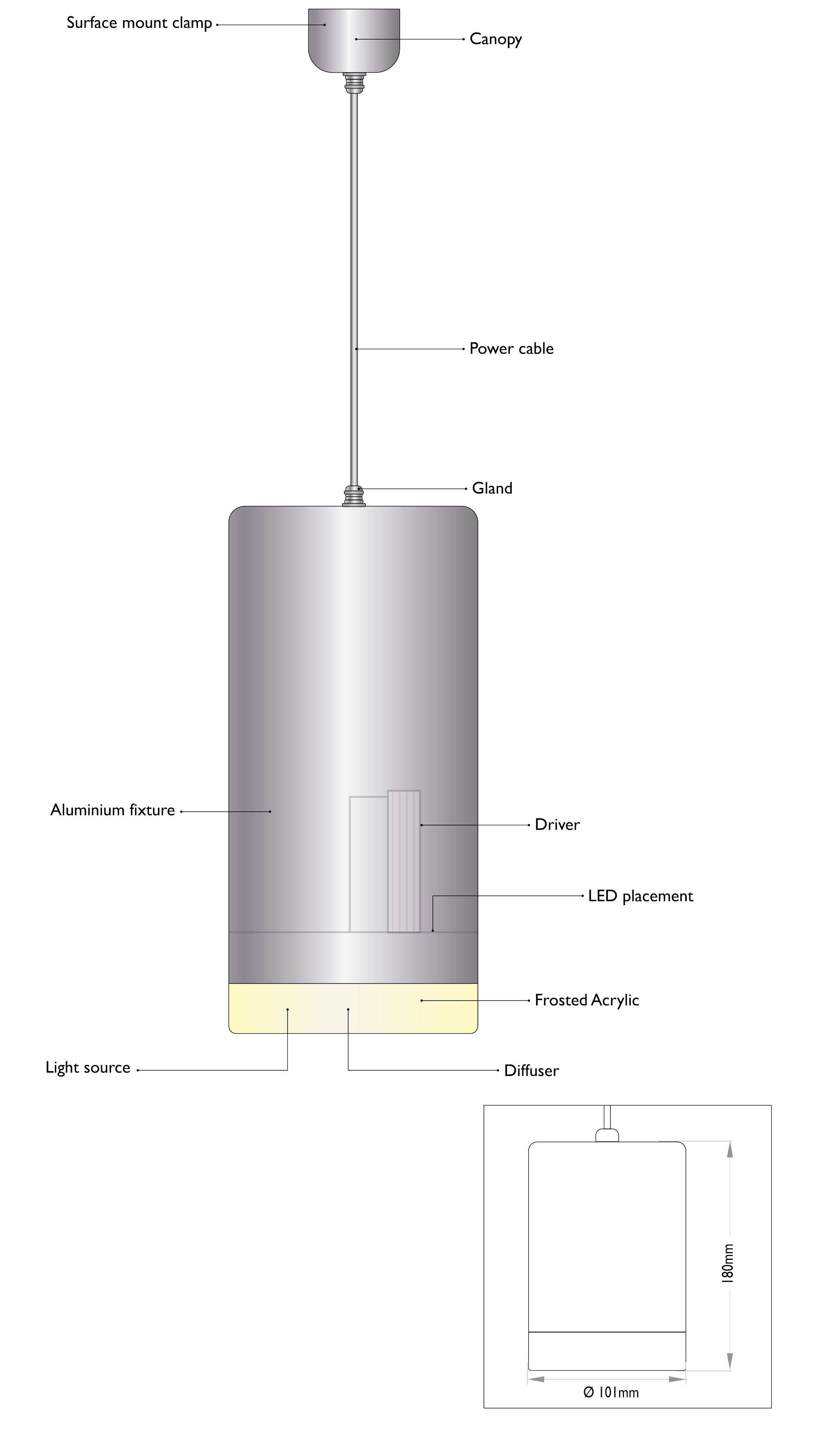 This Cylindrical Suspended luminaire is innovated to give frosted finish light source at the bottom which adds an unmatched aesthetic touch to the smart interior in any commercial place and this innovative design comes in different shades to meet the requirement of sophisticated interiors.