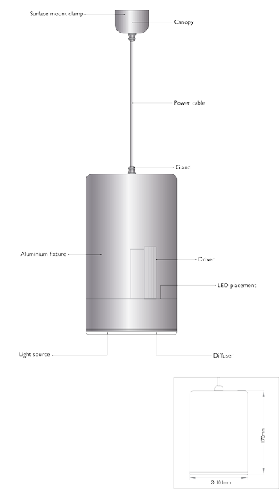 Cylindrical Suspended luminaire adds an aesthetic touch to the smart interior in any commercial place and this innovative design comes in different shades to meet the requirement of premium interiors. This fixture is manufactured using specially designed Aluminium alloy for better heat dissipation. This model also supports the Dimming and DALI controllable options.
