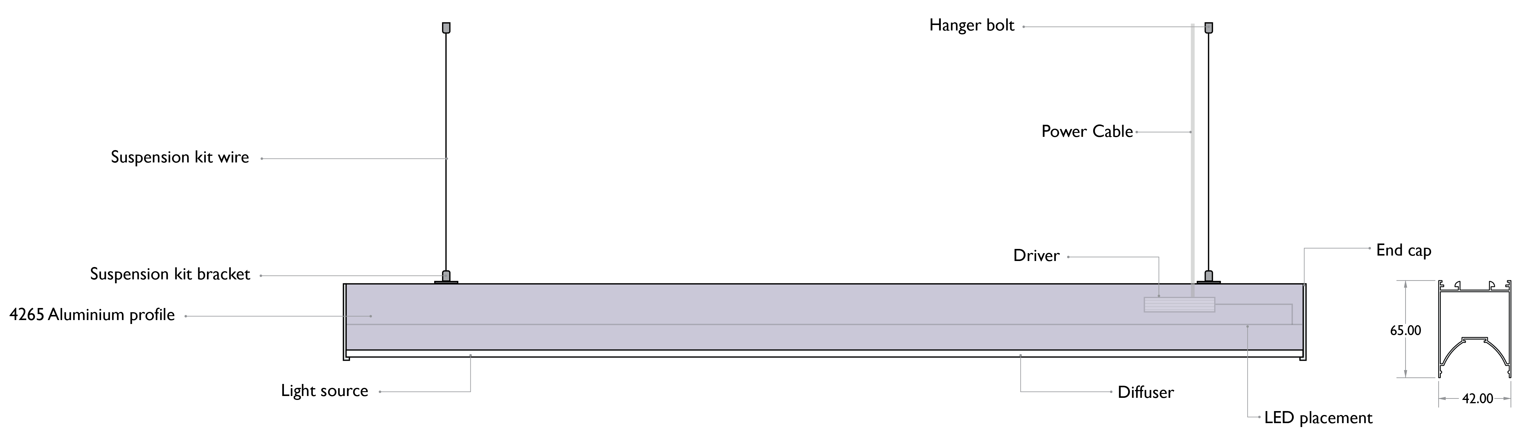 With a smart and sleek design, the Linear 4265 complements all modish architectural designs and ideal for offices, commercial spaces, and showrooms. This Lightweight Aluminium extrusion provides better luminous flux and uniform light distribution due to its concave designed light path inside the fixture. This Linear model offers cascading option in a series with zero light leakage between the connections.