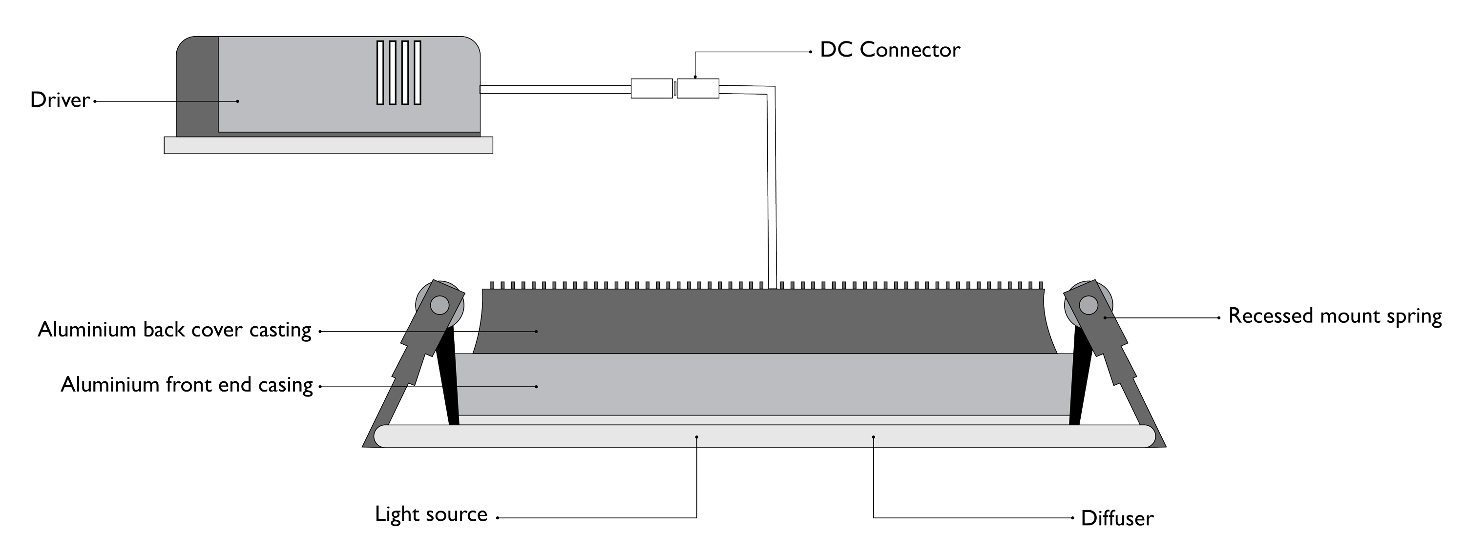 Manufactured by casting process using specially designed Aluminium alloy, this Round Downlight fixture carries lightweight feature and offers better heat dissipation.